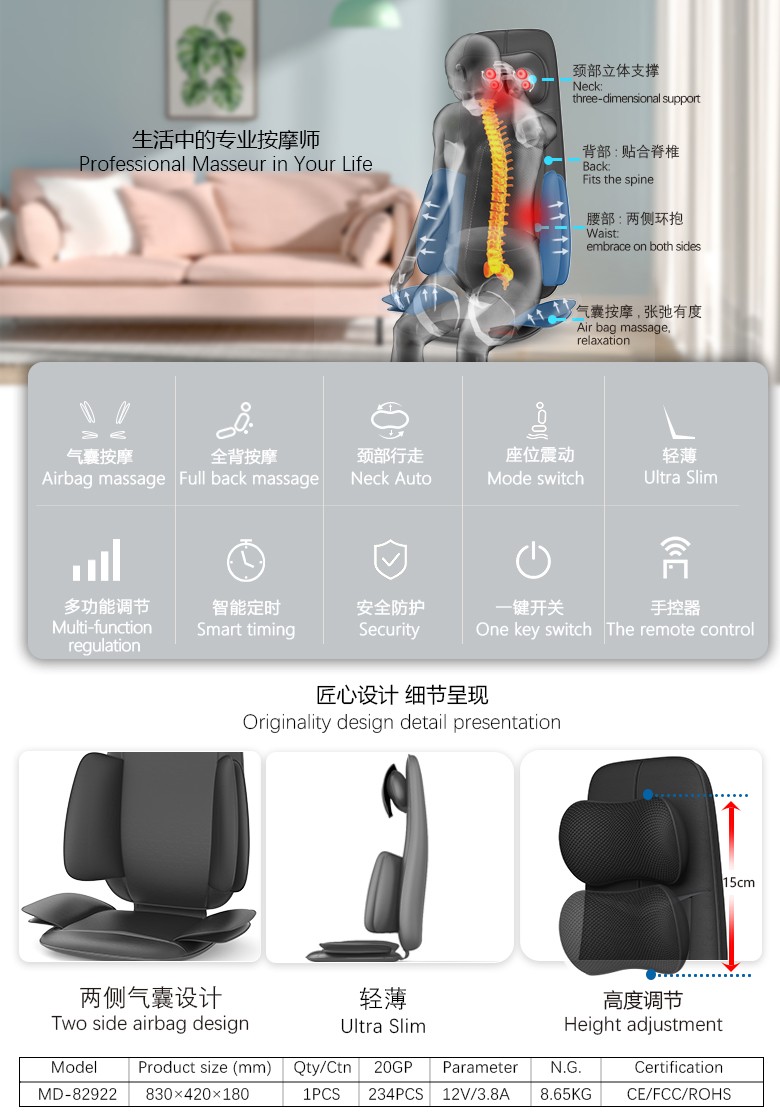 3.單電機8頭背部揉捏,普通車充,12V 5A適配器