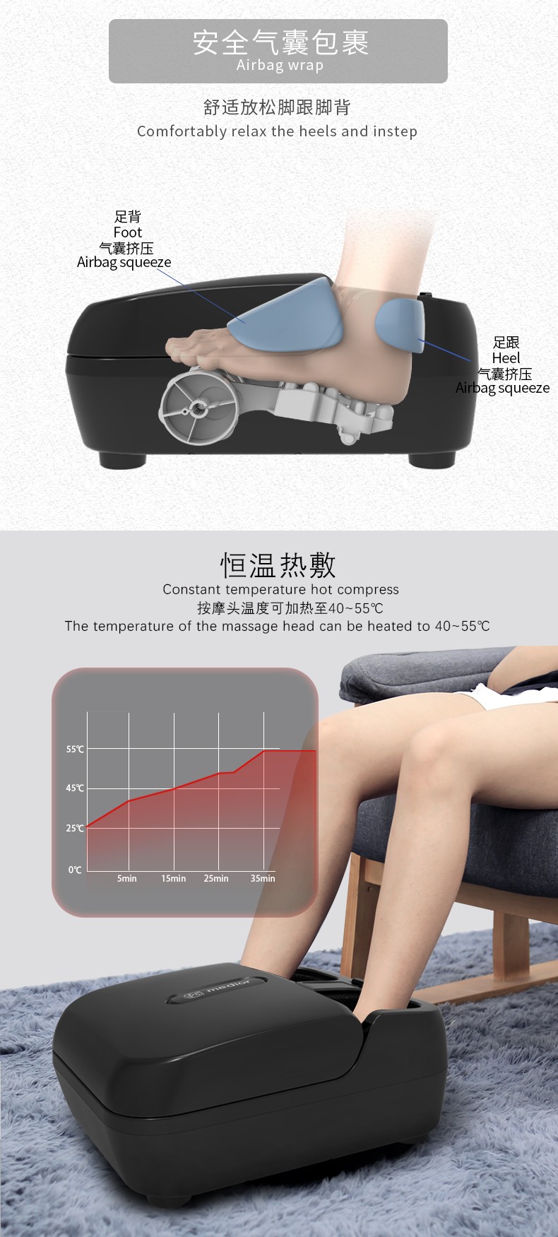 5.滾壓、刮痧、氣囊擠壓、3擋力度、3種模式