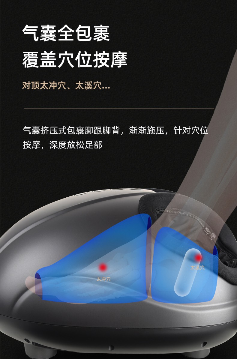 腳底 滾輪按壓(腳趾)、拖(腳底)、頂(腳后跟)按摩 (多模式,多強(qiáng)度)