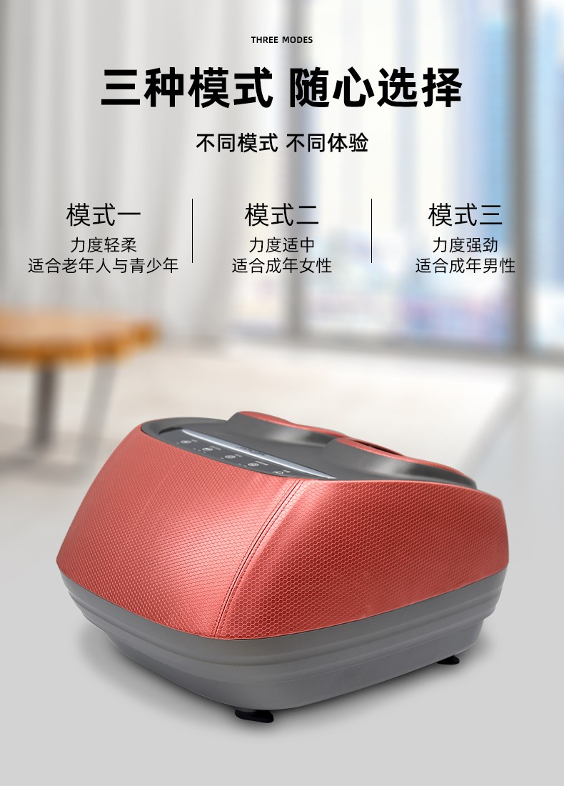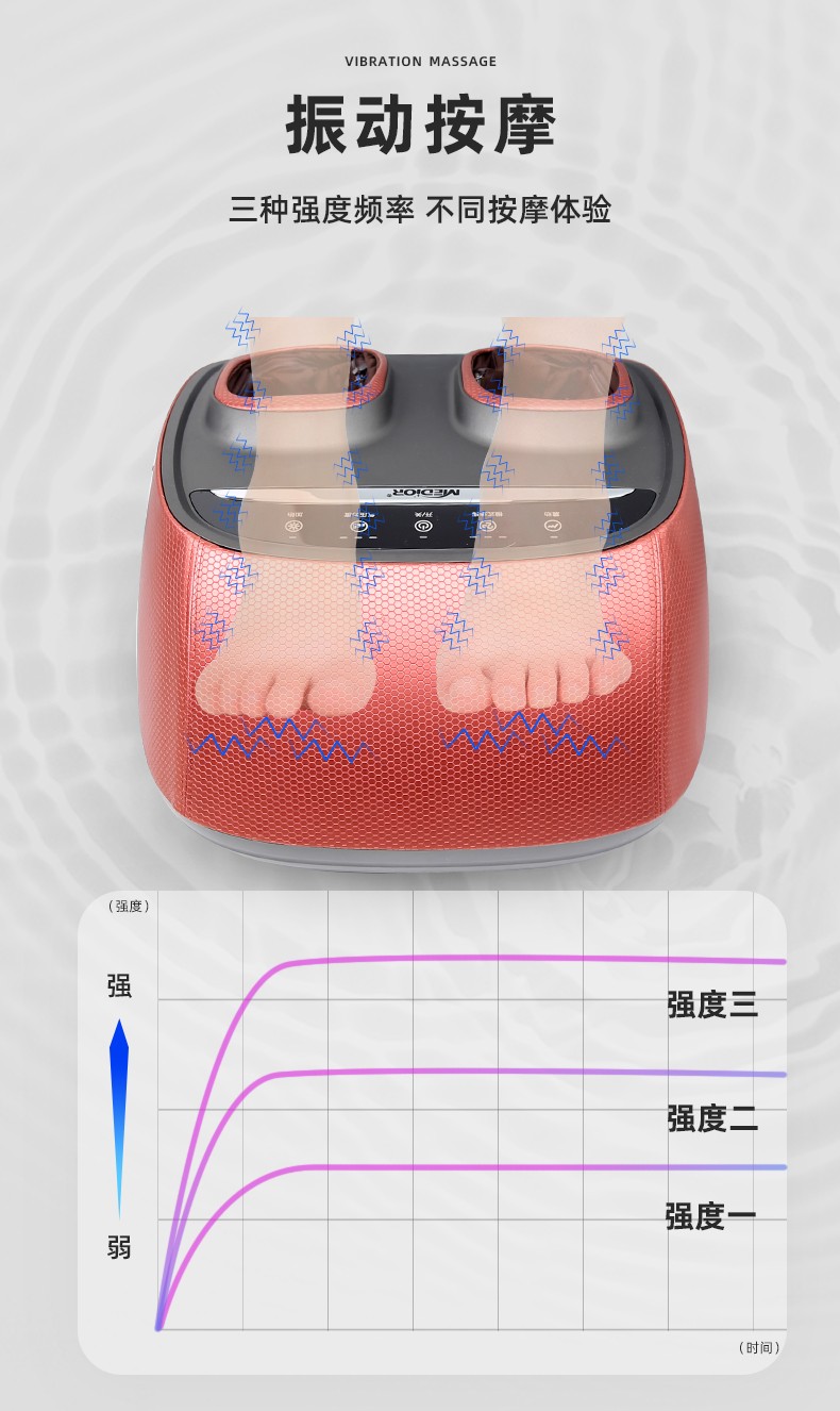 滾輪按壓(腳趾)、刮痧(腳弓)、捶打(腳后跟)按摩 (多模式,多強(qiáng)度);