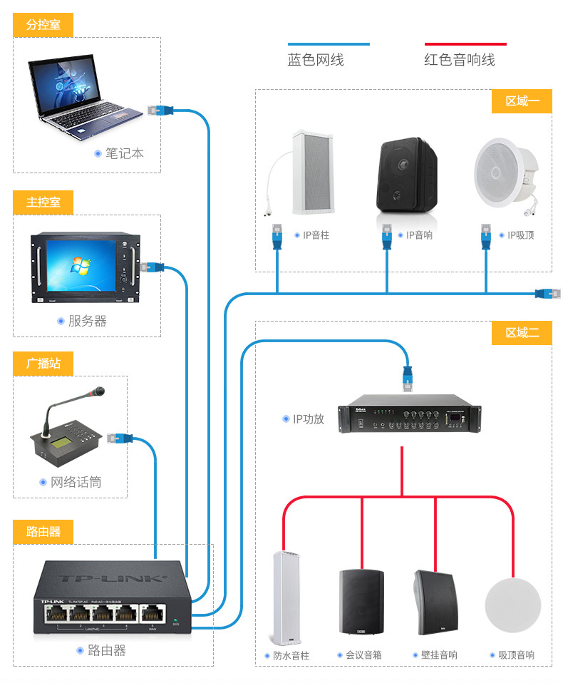 基于互聯(lián)網(wǎng)技術(shù)與云計(jì)算技術(shù),網(wǎng)絡(luò)音頻廣播系統(tǒng)是一套基于TCP/IP網(wǎng)絡(luò)的純數(shù)字化音頻廣播系統(tǒng)。網(wǎng)絡(luò)音頻廣播系統(tǒng)在物理結(jié)構(gòu)上與標(biāo)準(zhǔn)IP網(wǎng)絡(luò)完全融合。數(shù)字IP網(wǎng)絡(luò)廣播網(wǎng)絡(luò)廣播系統(tǒng)是基于IP數(shù)據(jù)網(wǎng)絡(luò),將音頻信號經(jīng)過數(shù)字編碼以數(shù)據(jù)包形式按TCP/IP協(xié)議在局域網(wǎng)或廣域網(wǎng)上傳送,再由終端解碼的純數(shù)字化單向,雙向及多向音頻擴(kuò)聲系統(tǒng)。